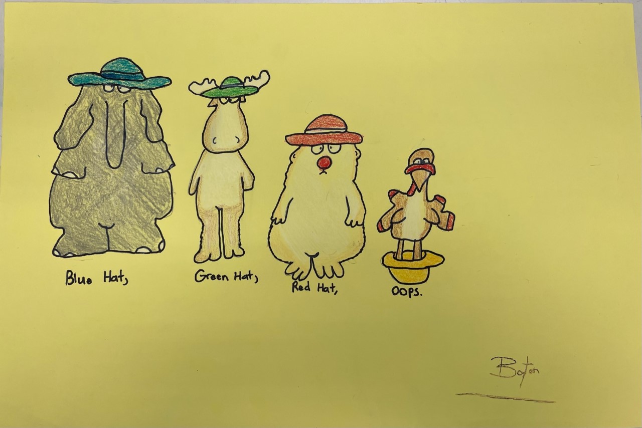 Blue hat, Green hat,Red hat,00ps    Braylin W. gr. 2   Banyan Elementary School