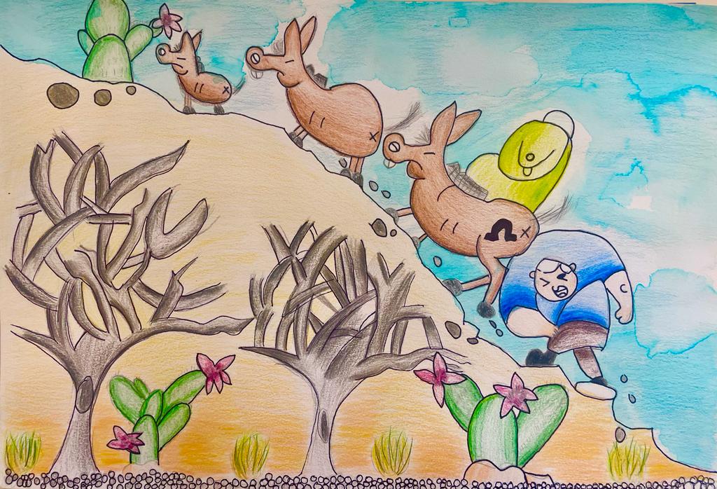 Helping my donkeys to climb the hill    Elianette P. gr. 4   Ethel Koger Beckham Elementary